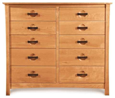 A fusion of Arts & Crafts and Asian design, the Berkeley Bedroom is both sophisticated and practical. Crafted in solid cherry hardwood with American black walnut accents, the collection features a variety of cases and a low footboard bed designed for use with a mattress only. Space, style and function are the three main themes expressed in the Berkeley storage bed. The Berkeley storage bed is unique, in that the drawers are mounted six inches above the floor allowing for easier access than other storage beds. Natural variations in solid wood and hand-applied finishes make each piece unique. Slight grain and finish irregularities tell you that the furniture has been crafted from solid wood and are considered hallmarks of quality.