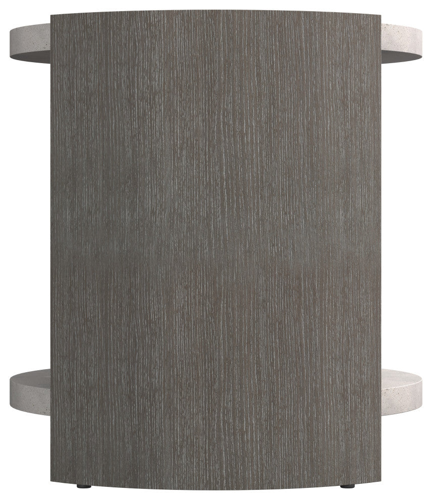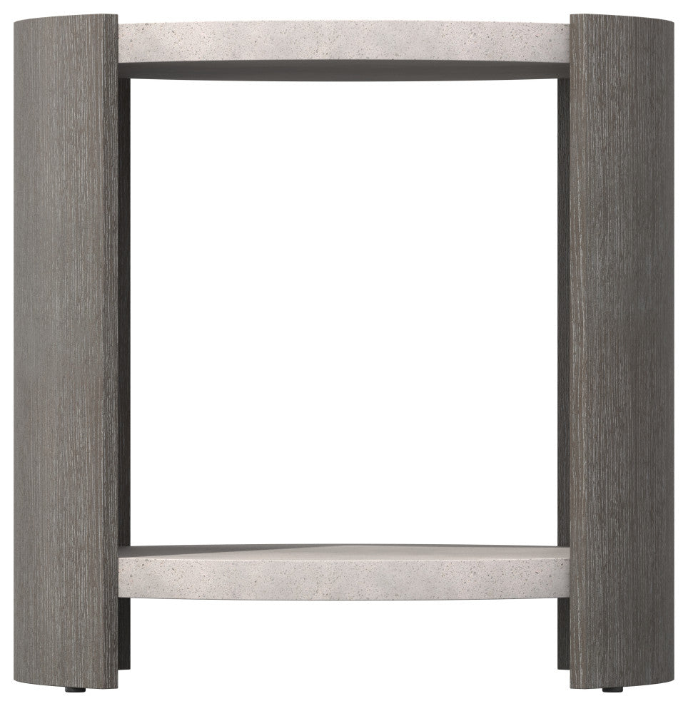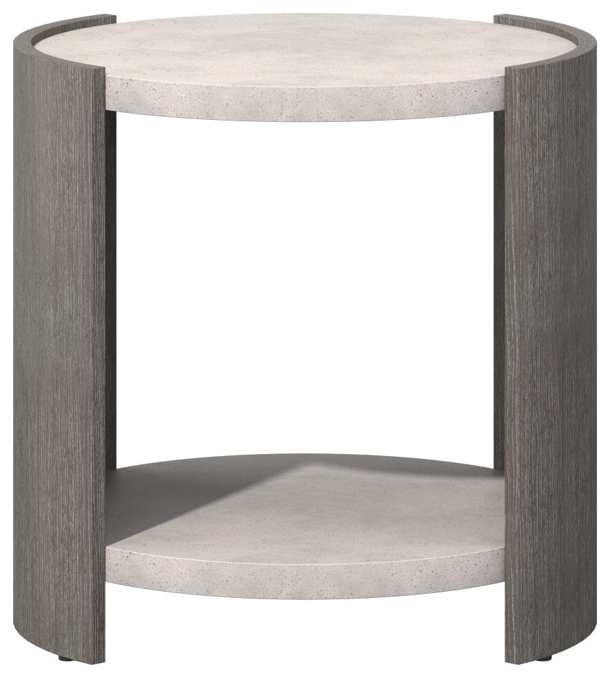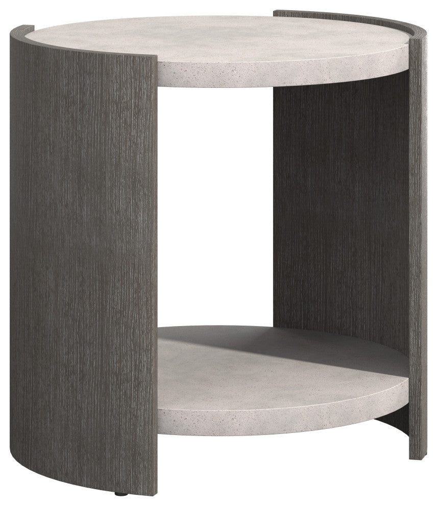 The Prado side table offers a novel approach to modern rustic design. Two curved wood panels in a Porcini finish surround and support a round cast glass-reinforced concrete top and lower shelf. Textural finishes and the balance of light and dark finishes crafts a beautiful contemporary style.