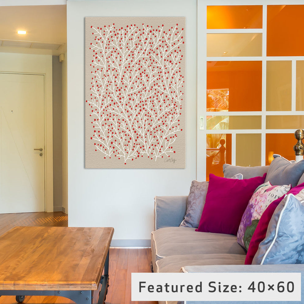 "Berry Branches Red Tan Artprint" by Cat Coquillette, 26x18x1.5