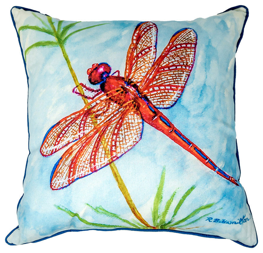 Betsy Drake Red Dragonfly Extra Large Pillow 22x22