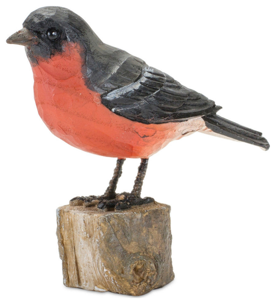 The beautiful set of Bird on Stump Figurines is the perfect addition to your spring Decor. Featuring two pieces, this set is sure to add a touch of nature to your living space. The realistic painted finish paired with the warm red and black tones and faux stump accent is the perfect combination to create a stunning display. Place the pieces togheter to make a statement, or dipslay them throughout your home to add interest to the rooms.