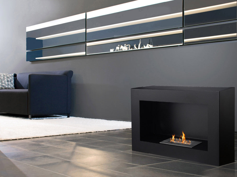 Black Freestanding Ventless Open Flame Ethanol Fireplace - Spectrum | Ignis