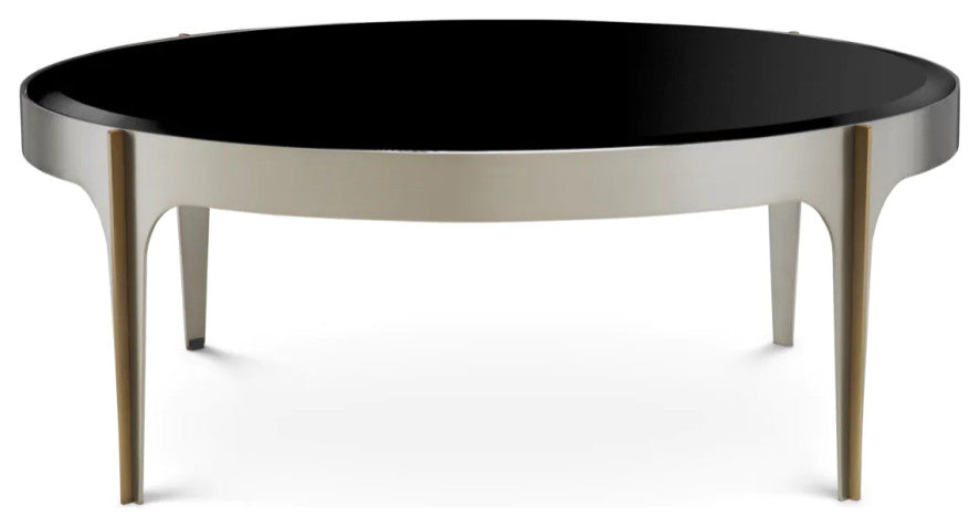 Elevate your living space with the luxurious Artemisa Coffee Table. Its elegant brushed steel and brass finish seamlessly blend with the sleek black beveled glass top, exuding modern refinement. This stunning piece offers a perfect harmony of contemporary design and timeless sophistication, ideal for those who seek opulence in every detail.