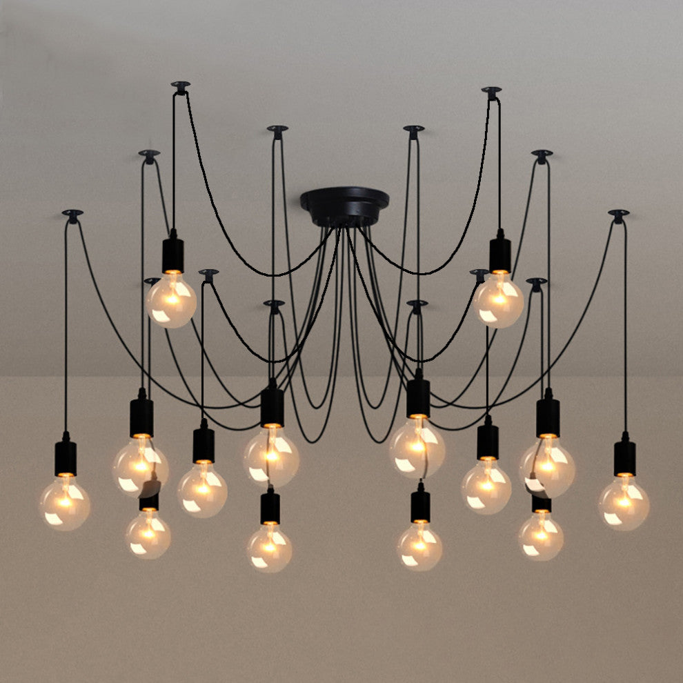 Black Industrial Edison Spider Chandelier Pendant Lights, Adjustable, 14 Lights