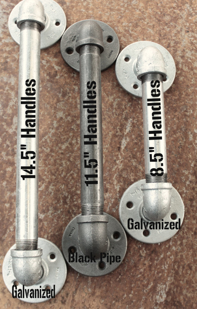 Black Pipe Industrial Door Pulls, Set of 2, Black Pipe, 8.5"