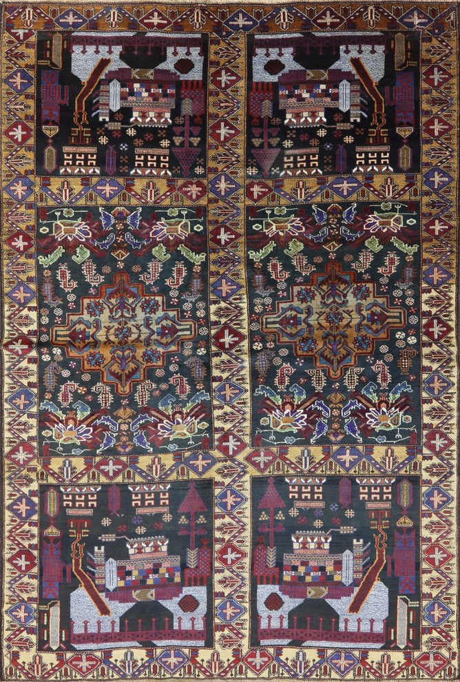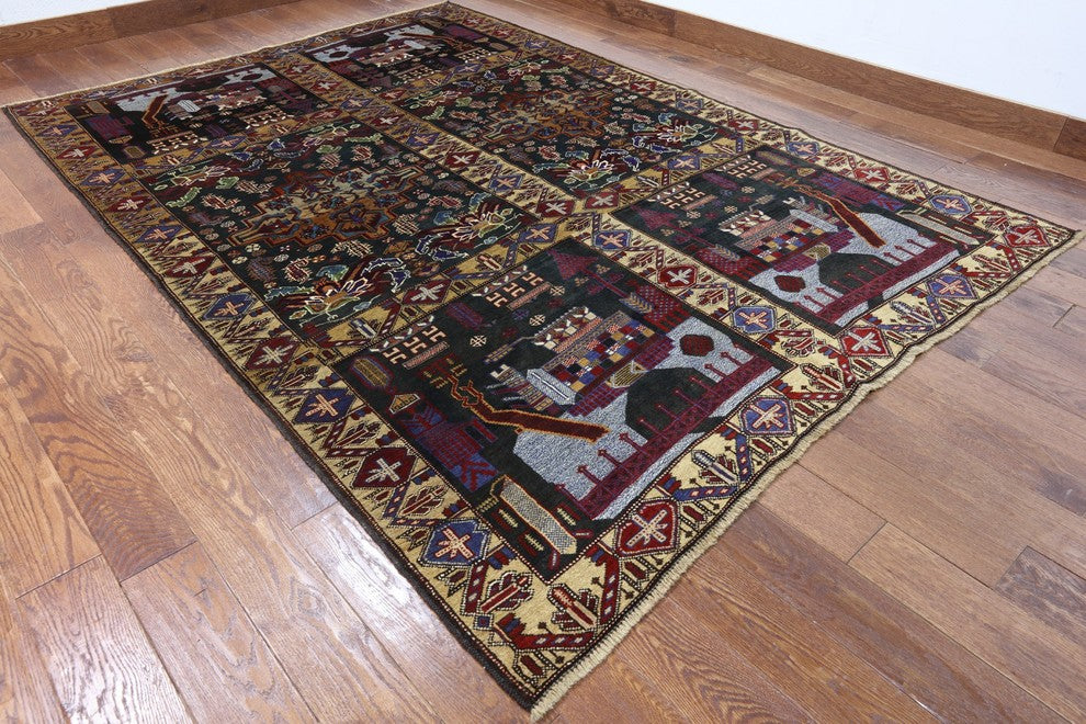 Black Tribal Geometric Afghan Hand-Knotted Wool Rug, 6'x9'