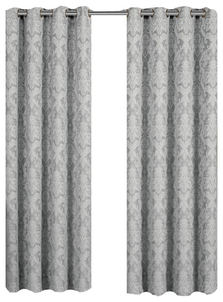 Relish the elegant glistening look of this Blair Jacquard Panels made from pure polyester in your living room or den. While forming the upscale look of fine draperies, these panels are machine-washable and easily maintained. The curtains have a damask pattern on either side in matching colors. Give your home decor the upgrade it needs with the classic jacquard panel pair featuring a beautiful jacquard paisley design.- 100% polyester- Panels add appeal and stylishness to any room- Curtains feature a damask pattern - Jacquard, Grommet- Machine-washableAvailable Sizes Include:- 108 x 63" (54 x 63" each.) (274cmX160cm) - 108 x 84" (54 x 84" each.) (274cmX213cm) - 108 x 96" (54 x 96" each.) (274cmX243cm)- 108 x 108" (54 x 108" each.) (274cmX274cm)- 108"W x 120"L (54 x 108" each.) (274cmX304cm)