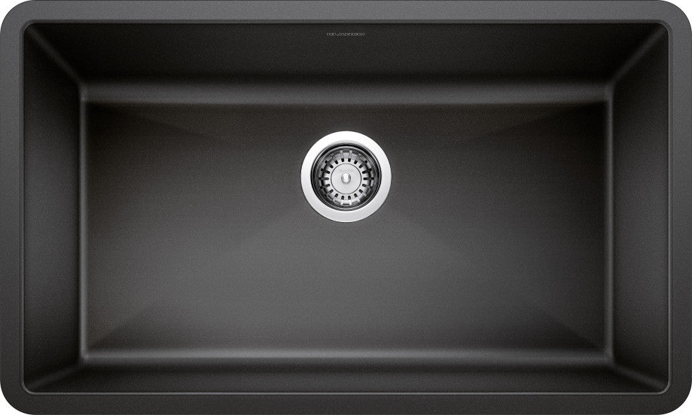 Blanco 440149 Precis Super Single-Bowl Sink (Anthracite). This single-bowl sink is larger than life, and features a 9-1/2" bowl depth for even more room. It features a heat-resistance of up to 536-degrees, and is constructed of 80-percent solid granite. Its unsurpassed cleanability and scratch/stain/acid/alkali resistance will keep this sink beautiful for years to come. This model comes in a beautiful, Anthracite finish.Features:Available in 8 classic colors including our new Cinder.Required outside cabinet: 36"Drain NOT included.Bowl Depths: 9-1/2"Cutout Size: Template provided with approximate 1/8" reveal80% Solid graniteHeat resistant up to 536?FUnsurpassed cleanability backed by industry leading 7 patents!Resistant to scratches, stains and all household acids and alkali SolutionsLimited lifetime warranty
