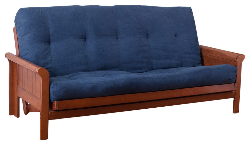 Add a splash of vibrant color and cushy comfort to your indoor furnishings with this 8-inch full-size futon. This futon features a three-layer foam core/cotton batting mattress design for maximum support and comfort and is available in a wide variety of colors of premium microsuede fabric.