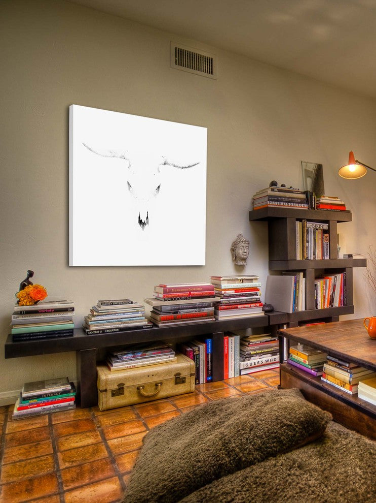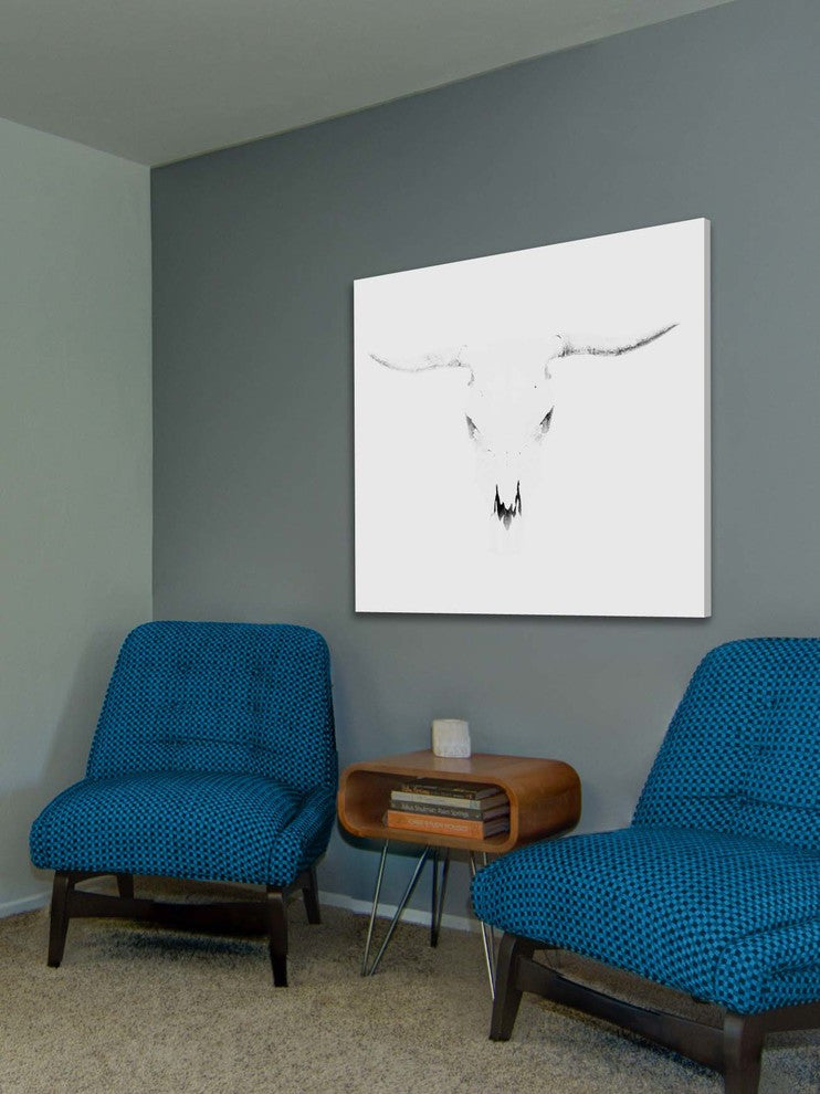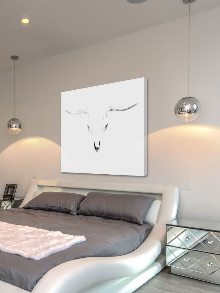 Striking and unique, the "Bleached Horns" Print on Canvas by Parvez Taj will bring your walls to life. Printed on canvas, this 48 inch wide by 48 inch tall contemporary artwork will make a statement in any living room, dining room, or bedroom.- Fine art canvas print by Parvez Taj- Professionally hand stretched- Gallery wrapped in sustainable, non-warping wood- Arrives ready to hang- Made in the USA- Includes a certificate of authenticity- Artist signature on the front