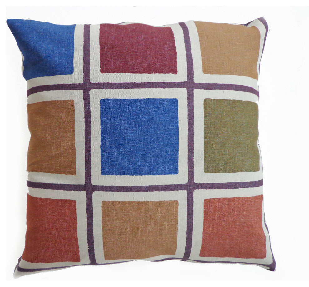 Add personality to any space with the unique Block Print Pillow. Featuring a block design for additional texture, this pillow provides color and dimension for your sofa or bed. The cover is made from a linen and cotton blend fabric and comes with a 95/5 down insert. Zipper closure. Pillow measures 20 inches by 20 inches.