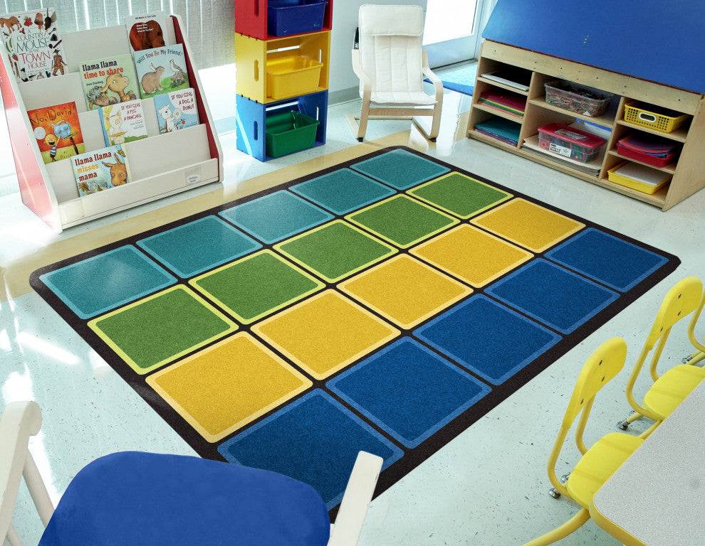 Don''t have a "mental block" about getting "blocked out" of a space because "blocks abound" on this vibrant classroom carpet. The C rug has twenty spaces, and the D and G have 30 spaces each. • Machine Tufted - Cut Pile • SoftFlex • Joy Tuff Rug Lifetime Limited Warranty • CRI Green Label Plus