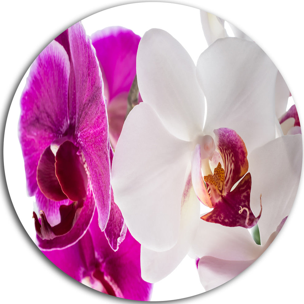 Blooming Orchid Flowers, Digital Art Disc Metal Wall Art, 36"