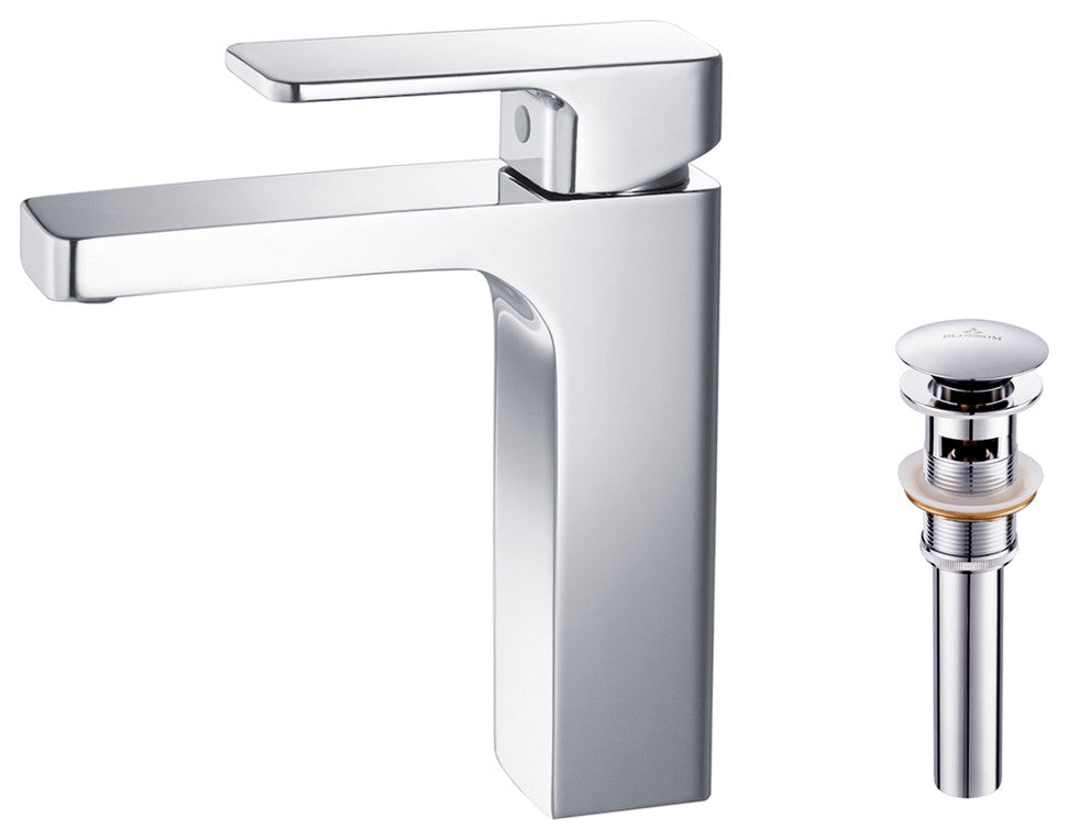 Blossom Brass Square Single Handle Bathroom Vanity Sink Faucet, Chrome W/ Pop-Up