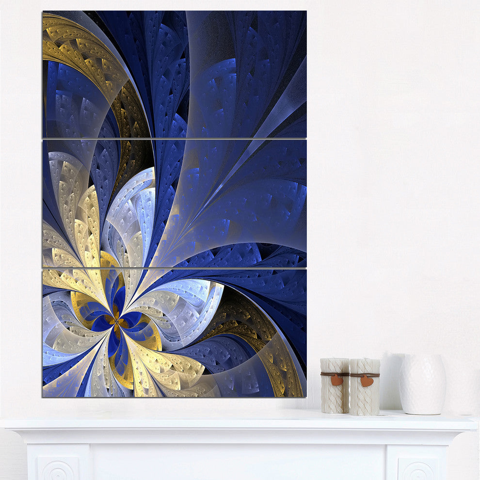 "Blue and Yellow Large Fractal Pattern" Metal Wall Art, 3 Panels, 28"x36"