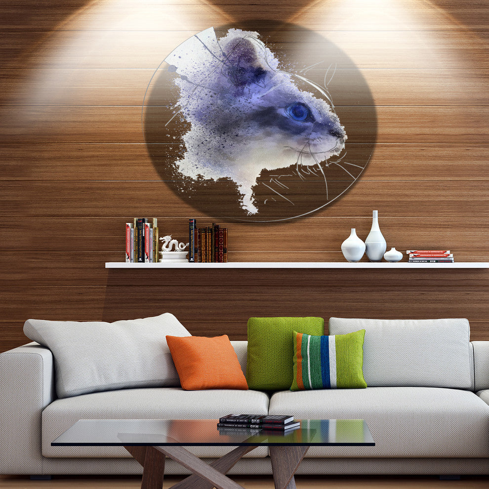 Bring Contemporary Abstraction to your home with this large Circle Metal wall art. This Blue Cat Face Watercolor Sketch Metal Artwork makes it the focal point of any room or office.
