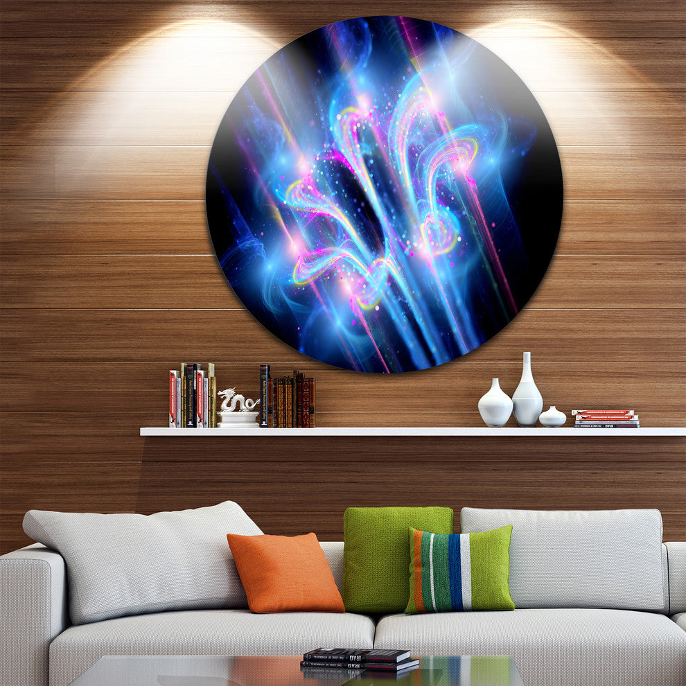 Bring Contemporary Abstraction to your home with this large Circle Metal wall art. This Blue Fractal Flower in Space Metal Artwork makes it the focal point of any room or office.
