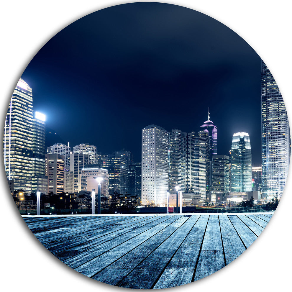 Bring Contemporary Abstraction to your home with this large Circle Metal wall art. This Blue Hong Kong City Skyline Metal Artwork makes it the focal point of any room or office.