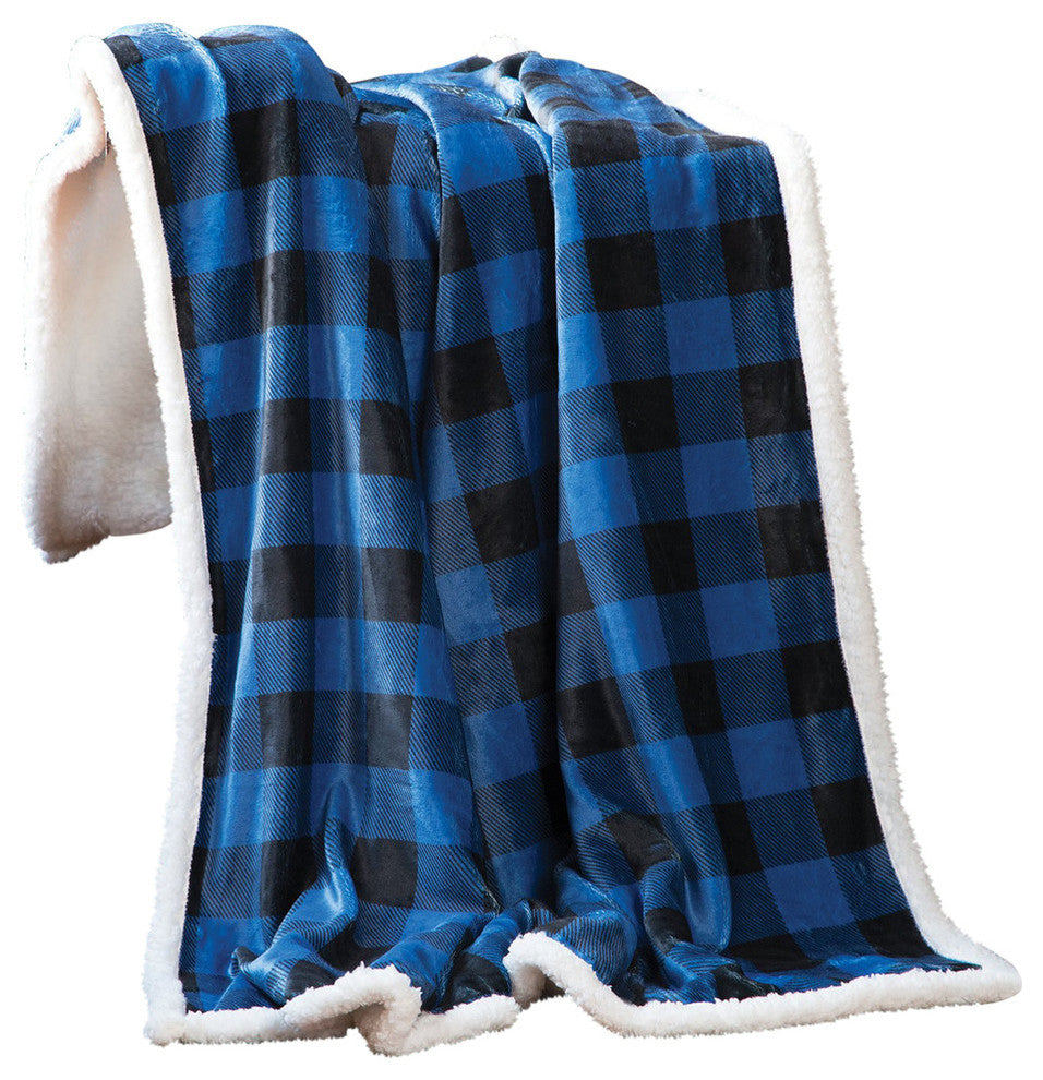 Blue Lumberjack Buffalo Plaid Sherpa Fleece Throw Blanket, 54"x68"