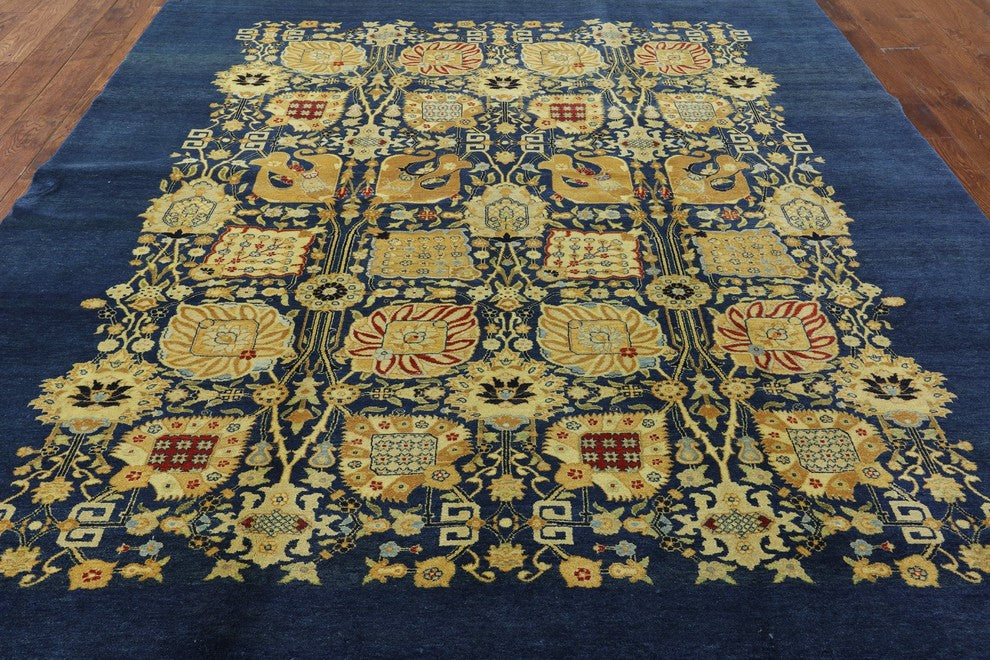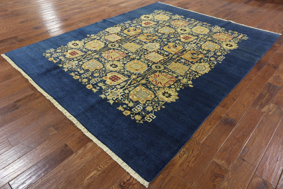 Blue Oushak Style Peshawar Quality Chobi Hand-Knotted Wool Rug, 8'x10'