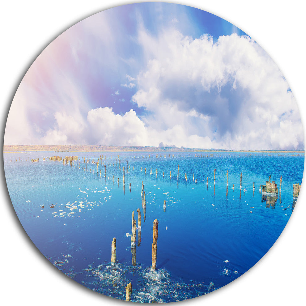 Blue Salt Lake Under Clouds, Seascape Disc Metal Wall Art, 36"