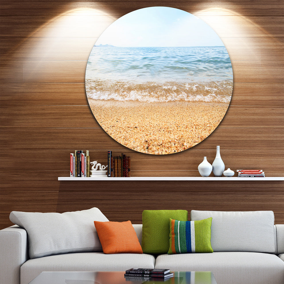 Blue Seashore With Pebble Stones, Modern Seascape Round Wall Art, 36"