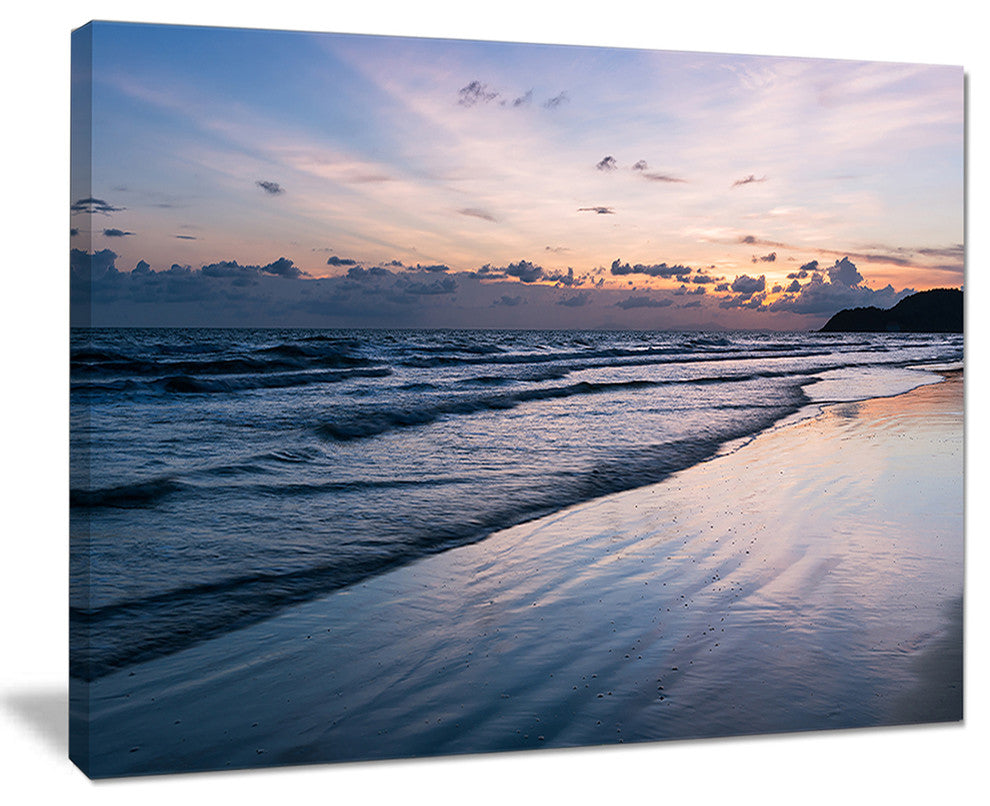 The Blue Sunset Sea Waves Thailand canvas art print is sure to make an impression on anyone who sees it. This artwork is gallery wrapped around a 1-inch solid wood frame and arrives carefully packaged and entirely ready to hang on the wall. Design Art only uses the highest resolution and pigments to ensure a crisp colorful print that is never faded or pixelated. This artwork is sure to be a conversation starter in any home or office.