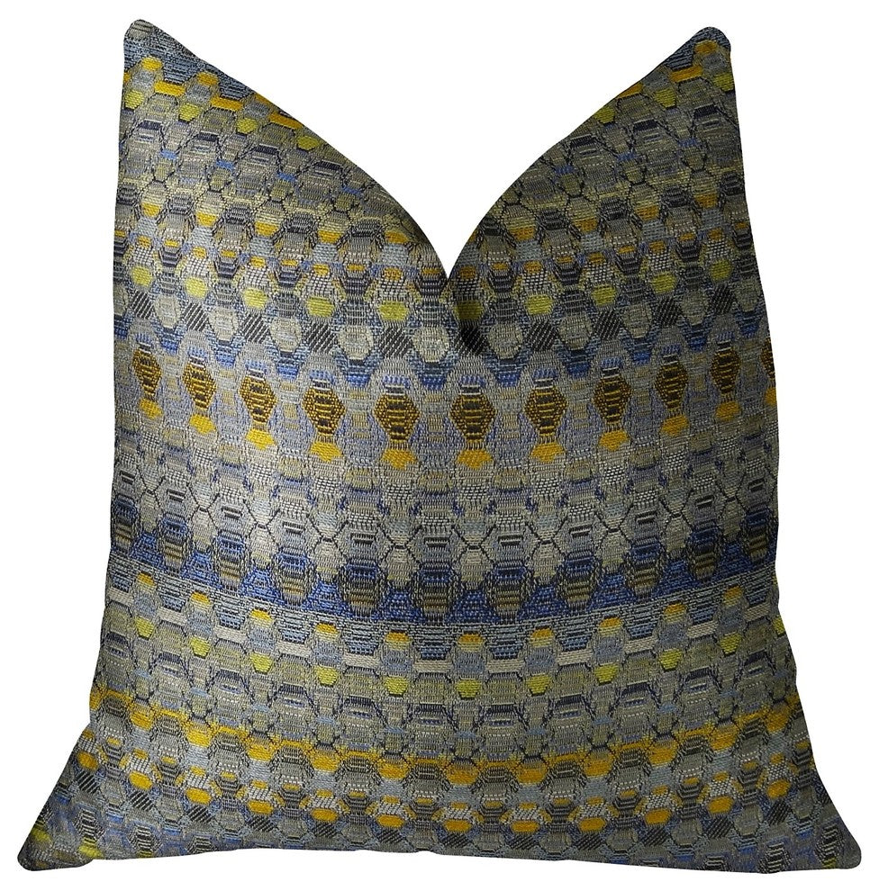 Add eloquence within any formal setting with this opulent design plutus blue wynne blue navy and yellow handmade luxury pillow. The fabric is a blend of Rayon and Polyester.
