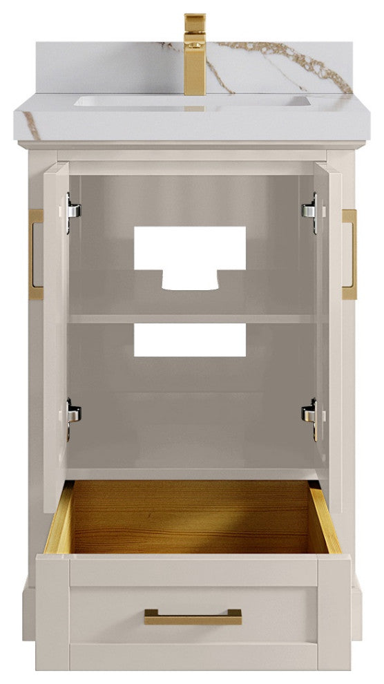 Boston 24" Single Sink Bath Vanity in Fine Grain 2" Calacatta Gold