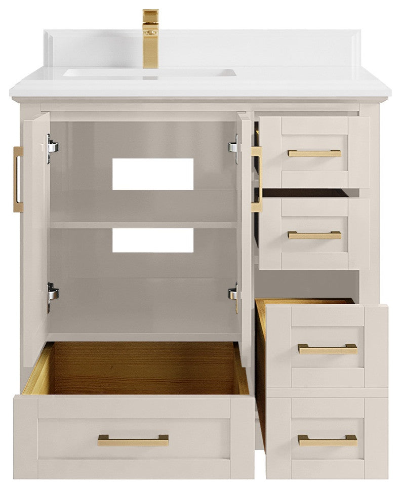 Boston 36" Left Offset Bath Vanity in Fine Grain 1.5" White Quartz