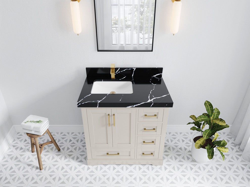 Boston 36" Left Offset Bath Vanity in Fine Grain 2" Calacatta Black