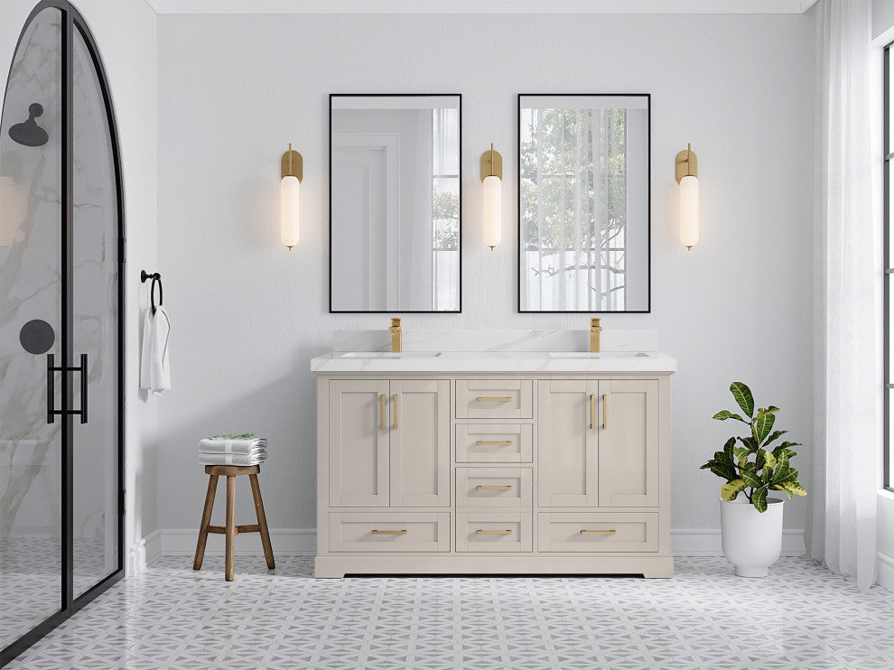 Boston 60" Double Bathroom Vanity in Fine Grain 2" Calacatta Sienna