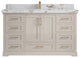 Willow Collection Boston 60 x 22 Single Sink Bath Vanity in Fine Grain with 2" Straight/ Mitered Edge Viola Gold QuartzThe Boston collection features a traditional design bathroom vanity that is both stylish and functional. The vanity is available in Navy Blue, White, Gray and Green colors, and it features soft-close doors and drawers for a smooth, quiet operation. The solid wood frame construction ensures durability, while the dovetail joint adds a touch of craftsmanship. The Boston collection is an excellent choice for any bathroom. This Boston vanity features a handy power plug and hairdryer holder that is available in sizes starting from 42 up to 84 in. The power plug features two USB ports, so you can charge your phones or use them to operate your hairdryer. The hairdryer holder is specially designed to fit most standard hairdryers. With its stylish design and practical features, this vanity is a great addition to any bathroom.Details:Material: Birch Wood and Plywood (NO MDF or PRESSBOARD) Finish Available: Elephant Skin Gray, Evergreen, Navy Blue, White, Pewter Green, Fine Grain and AlabasterNumber of Drawers: 5 Regular Drawers, 1 DOUBLE DRAWER WITH POWER PLUG AND ACCESSORIES ( DEEP), 1 Regular Double Drawer (Deep), 1 ShelfSink Installation: Under-mounted rectangle SINK(S)Hardware: Soft closing hinges and slider Hardware Finish : Brushed NickelCabinet Width: 59 (in.)Cabinet Depth: 21-1/2 (in.)Countertop Width: 60 (in.) Countertop Depth: 22 (in.)Cabinet Height: 34 (in.)Countertop Height: 1.5 (in.) Double Cove Edge or 2 (in.) Straight/ Mitered EdgeCabinet Height with Top: 36 (in.)Backsplash Height: 4 (in.)Faucet: NOT IncludedFaucet Hole(S): Comes with SINGLE hole faucetVanity Countertops options: Mitered /Straight edge or Double Cove Edge (White Quartz, Calacatta Laza Quartz, Calacatta Nuvo Quartz, Carrara Quartz, Empira Quartz, Carrara Marble, Piatra Gray Quartz, Pearl Light Gray Quartz, Venatino Quartz, Calacatta Gold Quartz, Calacatta Black Quartz)