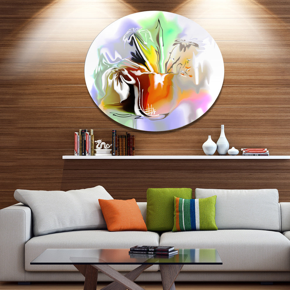 Bring Contemporary Abstraction to your home with this large Circle Metal wall art. This Bouquet of Abstract Flowers Metal Artwork makes it the focal point of any room or office.