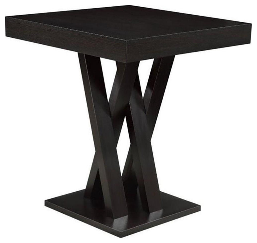 Bowery Hill Square Crisscross Base Pub Height Dining Table in Cappuccino