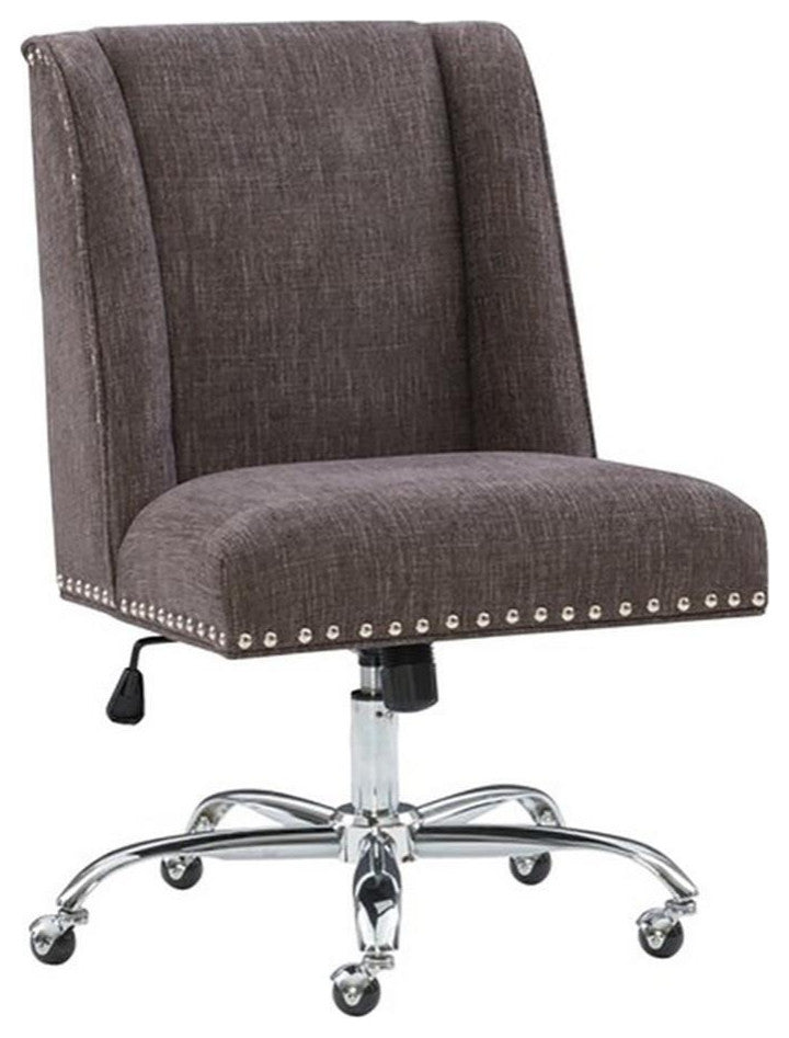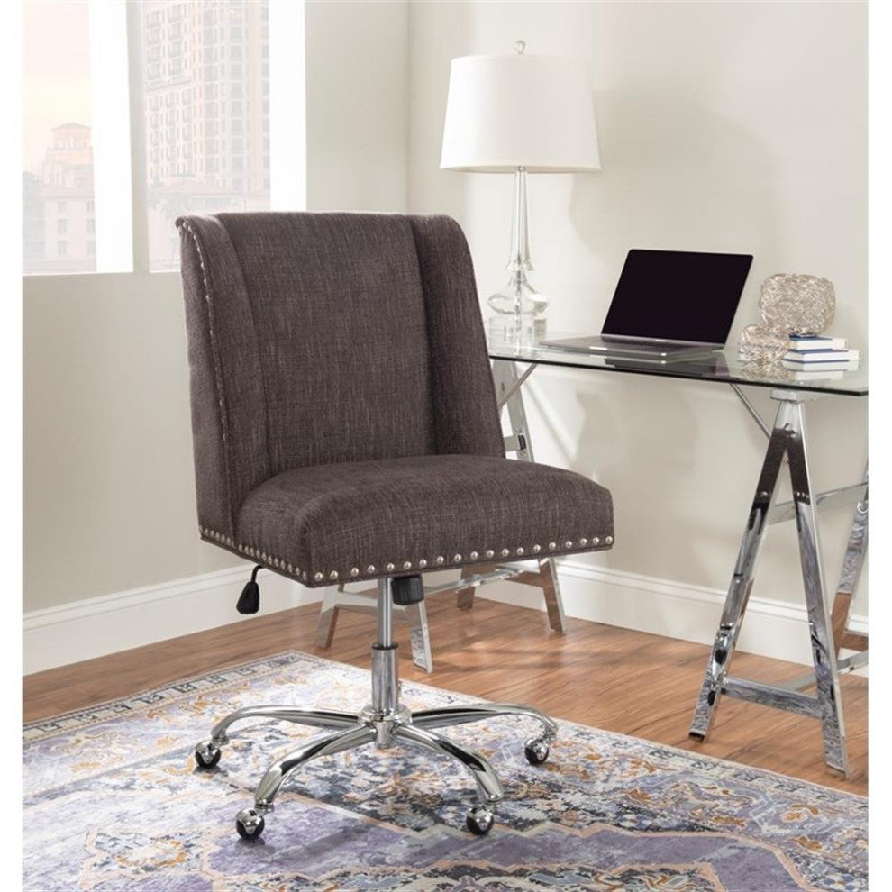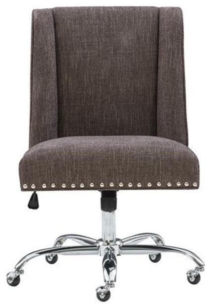 Add style and function to your office with the Bowery Hill Office Chair. The soft, plush frame features simple, modern lines upholstered in charcoal and accented with silver nail heads. A chrome base is set upon durable metal casters for easy maneuverability. An adjustable seat height ensures this chair works for a variety of table heights. Perfect for a home workspace or an added touch of style at the office.Features: • Material: Pine, rubberwood, CA foam, 100% polyester fabric, metal • Finish: Charcoal gray, chrome • Stylish and comfortable option for office seating • Plush seat and back • Silver nail heads • Chrome base and metal casters • Gas lift, mechanism, and casters with BIFMA standardSpecifications: • Product Dimensions: 37.5"H x 28"W x 28.5"D • Product Weight: 37.7 lbs • Seat Dimensions: 20.25"-24.25"H x 23.25"W x 17.75"D • Weight Capacity: 275 lbs • Assembly Required: Some Assembly Required