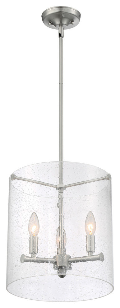 Bransel 3 Light Pendant Fixture Brushed Nickel Finish with Clear Seeded Glass