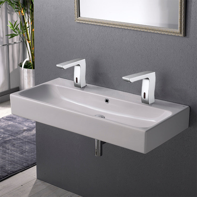 Minimize waste of water, by using the automatic faucet. Immediately reduces water waste by eliminating unnecessary and unattended water flow. Fits all standard US plumbing. Uses 4AA Alkaline Batteries (purchase separately). Water Pressure : 0. 5 - 7. 0 KGS/cm, 10-125 psi. Sensor faucet complete motion detection operation. Commercial and residential use. Sensitive Sensor with Infrared AI Smart-ChipFactory set to 30-second Auto Shutoff (can be adjusted). Water Pressure : 0. 5 - 7. 0 KGS/cm, 10 - 125 psiSolid Brass Construction, Polished Chrome FinishEasy to Install - Instructions IncludedWater resistant solenoid enclosureAdvanced energy saving design for long lasting battery lifeComes complete with Hoses & AccessoriesPower Supply : AC110V And DC6V (batteries not included)AC/DC power option. ADA CompliantEasily can be installed in new or retrofit applications. Reduces the transfer of germs by preventing cross-contamination and re-contamination of germs and bacteria by not touching the faucets or handles. Cut down on water usage by minimizing waste of water while soaping, lathering, scrubbing and drying hands by eliminating unnecessary and unattended water flow. Sensor Activated Faucet Special Features : Durable Vandal-Resistant Brass Body; Ideal for Residential as well as commercial high use applications. Intelligent : with its micro-computer controlling its action, the faucet will self adjust its best detection zone as per the color and shape of lavatoryFlashing light indicator; a diagnostic indicators for power up, low battery, and solenoid function. Meaning of the codes are described in the installation instructions. Convenient to maintain; with built-in strainer to prevent sundries from entering the solenoid valve and the strainer is easy to cleanFaucet can be mounted to any sink surface. ADA Compliant. Batteries life 8, 000 cycles per month and with enough water pressure is approx. 5 year service life of the batteries. Adjustable sensing range; while the factory range is set about 4" to 5" from the sensor, it can be adjusted. Specifications : Diameter of inlet pipe : DN15Diameter of outlet pipe : DN15Water Pressure : 0. 05Mpa - 0. 7MpaFlow Rate: Maximum 1.8 GPMAerator Included: Minimum .5 GPMPower and Voltage : DC. 6V / AC. 220V - 50/60HzPower Consumption : 0. 5MWDetection Zone : Factory set 25cm/10" (based on standard inductive board)Ambient Temperature : 1 - 45 Degrees C / 33. 8 -113 Degrees FDegree of protection by enclosure : 1P56Battery : 4 x ''AA'' size cellsOperational water pressure range : 0. 05 - 0. 6MPaWater supply pipe size : DN15Trio Features : Infrared sensor operated, touch-free operationWater ConservingWaterproof sensorBattery low LED light indicatorAdvanced circuit design saves electricity and waterAdvanced energy saving design for long lasting battery life. Three-year battery life based on 3, 000 hand washes per monthSensor is not affected by reflections or abnormal lightingSelf-adapting sensors rangeLong life durable bodyPower Supply OptionsHands-Free Sanitary OperationADA ComplaintVandal-Resistant AeratorAutomatic 30-Second Time OutHighly-Polished, Chrome Plated Cast Brass BodiesLow Battery Indicator LightIn-Line FilterFactory Set Sensor Range