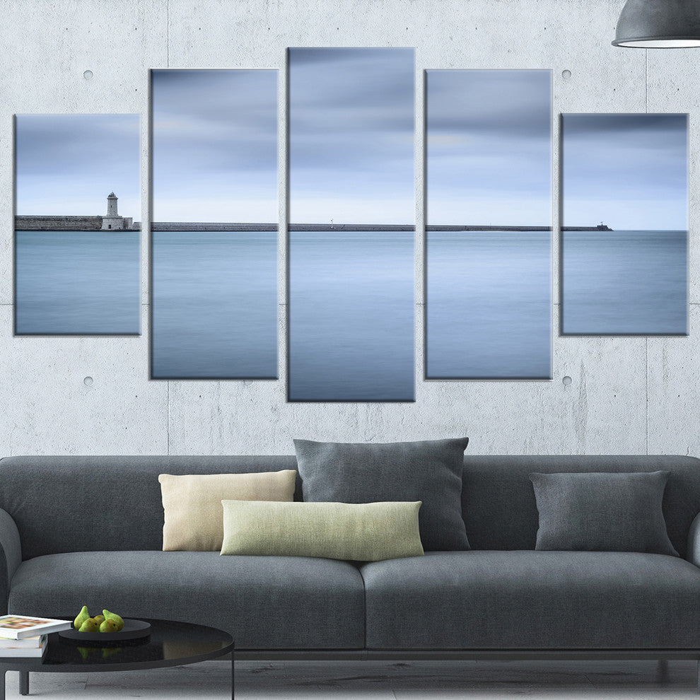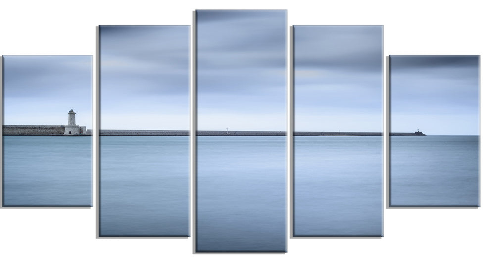 "Breakwater and Soft Water Under Clouds" Landscape Wall Art, 5 Panels, 60"x32"
