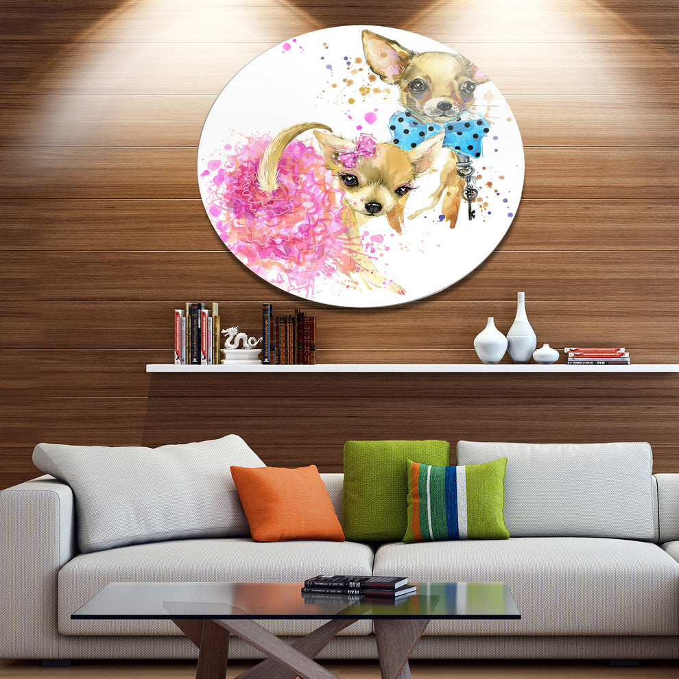 Bridge And Groom Dog Illustration, Animal Round Wall Art, 36"