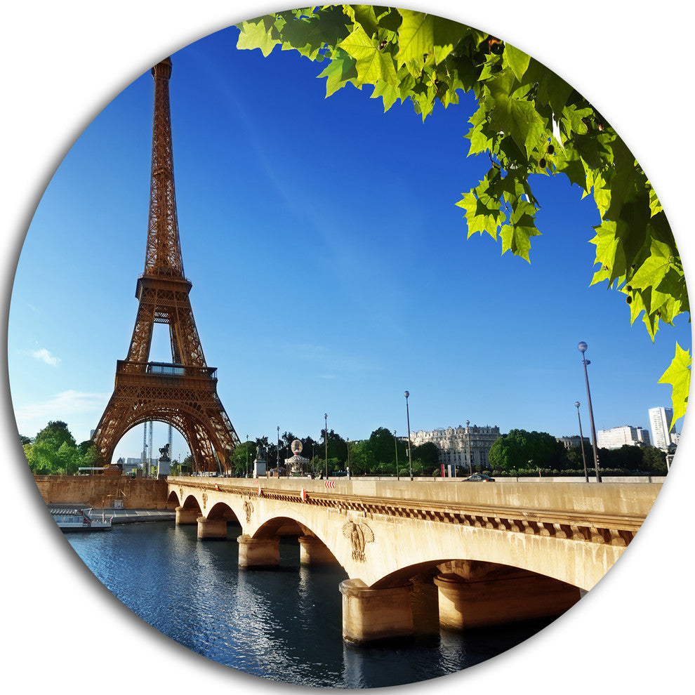 Bridge To Paris Eiffel Tower Paris, Cityscape Round Metal Wall Art, 11"