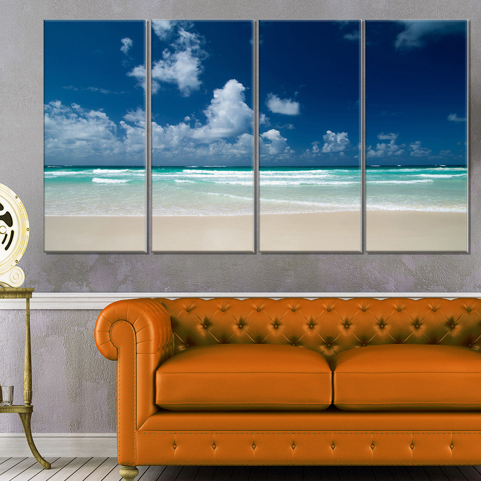 "Bright Blue Sky On Winter Day" Seashore Canvas Print, 4 Panels, 48"x28"