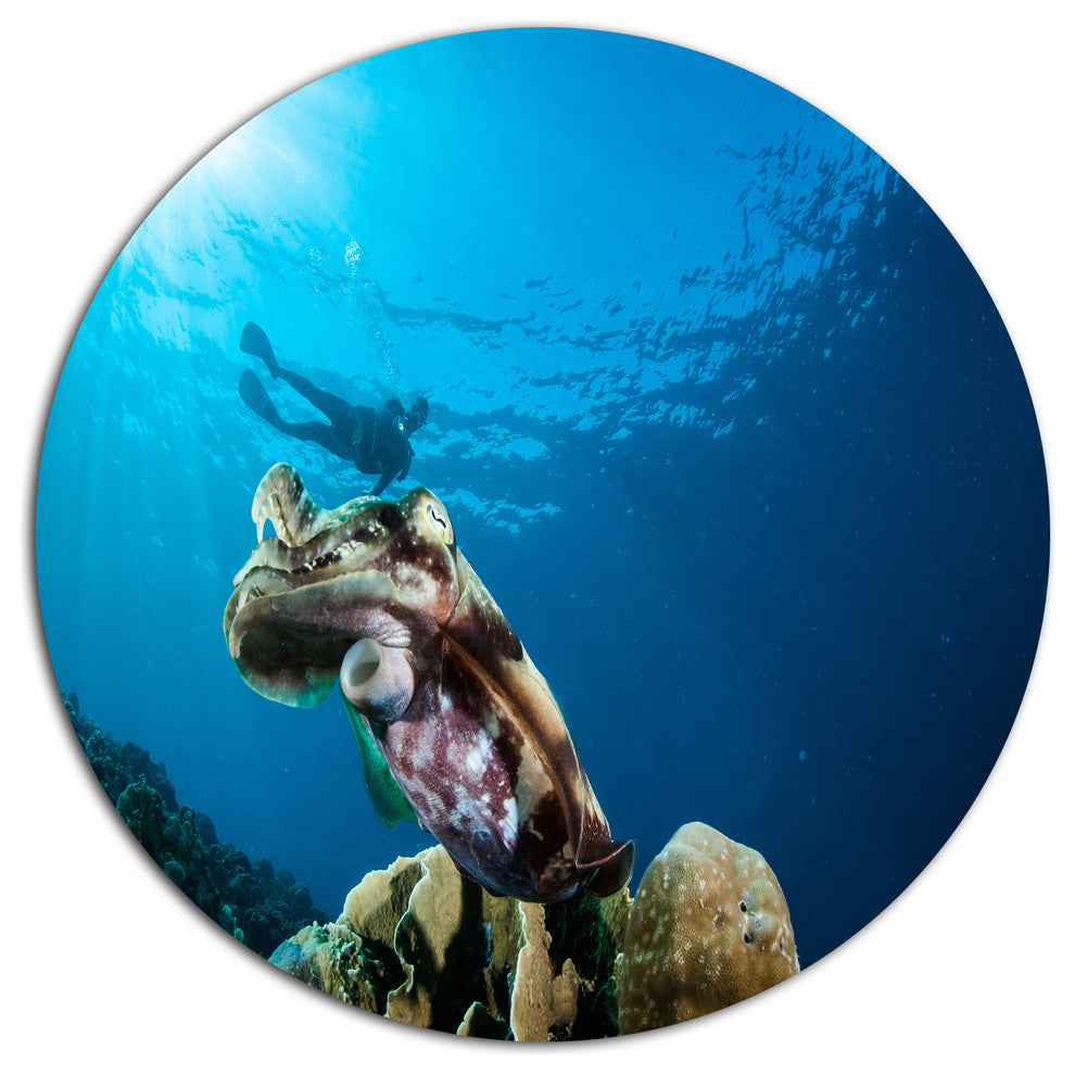 Broadclub Cuttlefish Underwater, Seashore Round Metal Wall Art, 23"