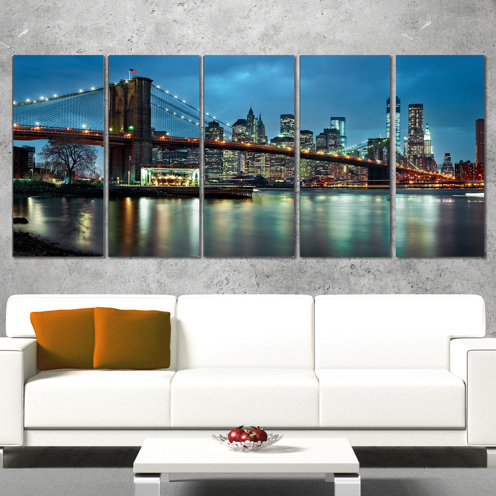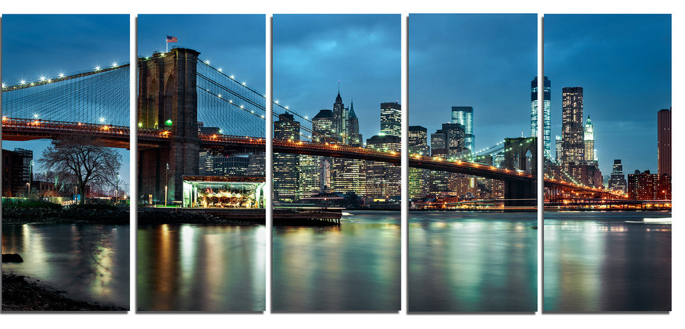 "Brooklyn Bridge and Skyscrapers" Canvas Print60"x28", 5-Panels