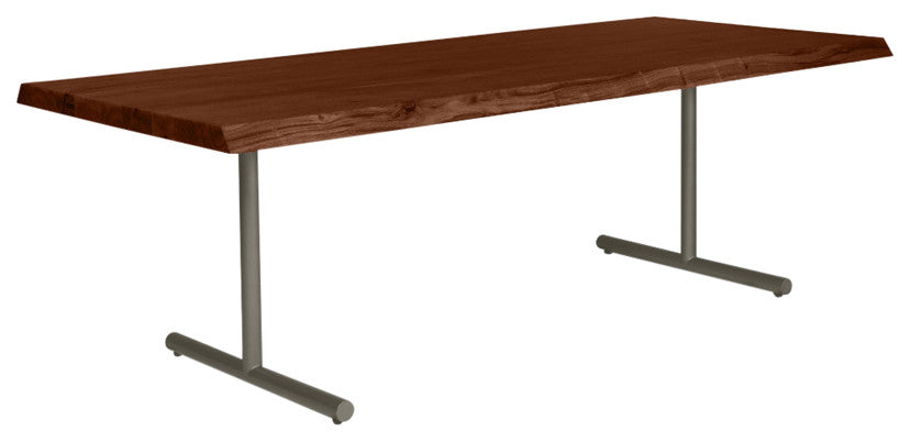 Brooks Dining Table, T Base, 40"x116", Americano Top, Pewter Base