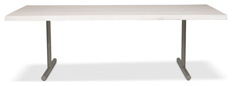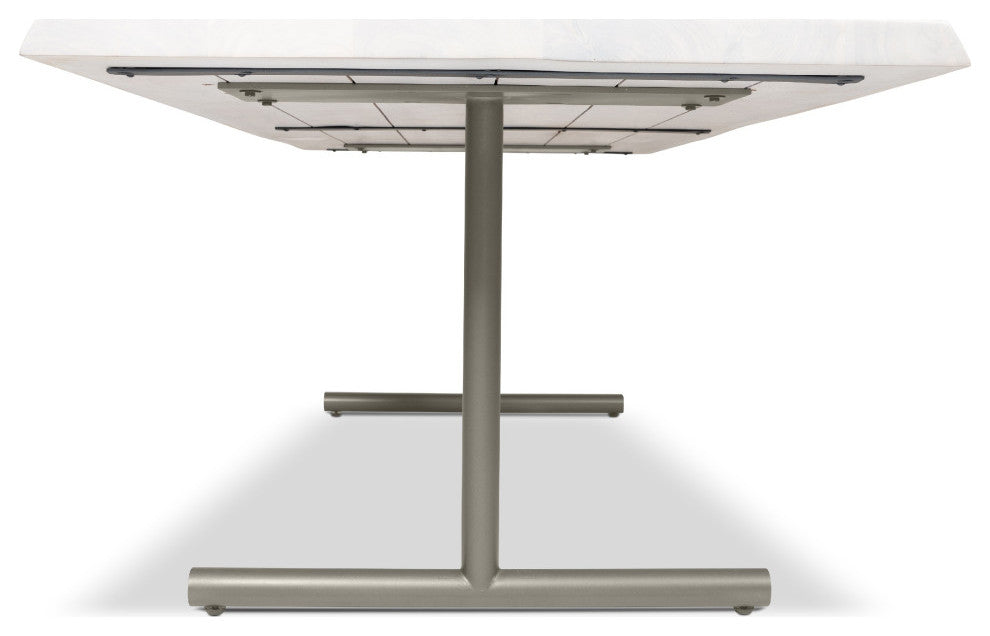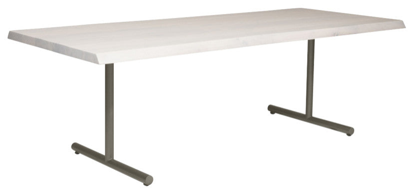 Brooks Dining Table, T Base, 40"x116", White Wash Top, Pewter Base