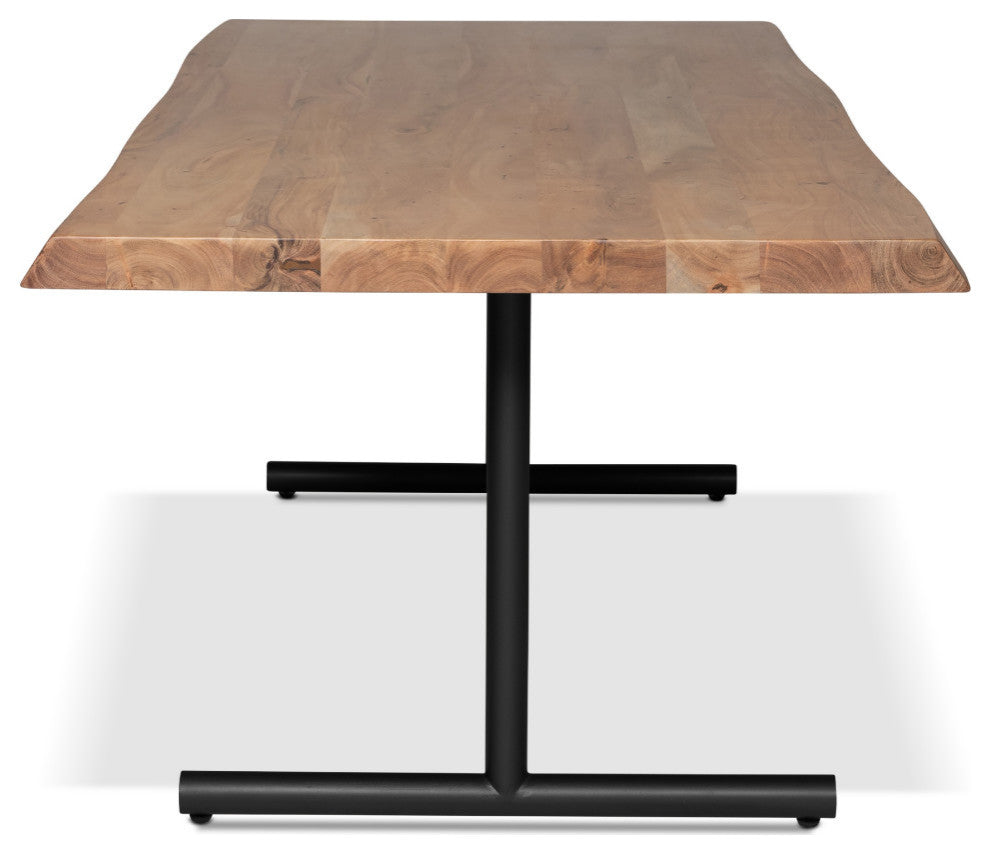Searching for a modern dining room table that will last for years to come? The Brooks T Base Dining Table is a contemporary table crafted from solid acacia wood and durable aluminum that''s sure to be a great statement piece in your home. Due to the natural wood, each table top will have its own markings and grain pattern.