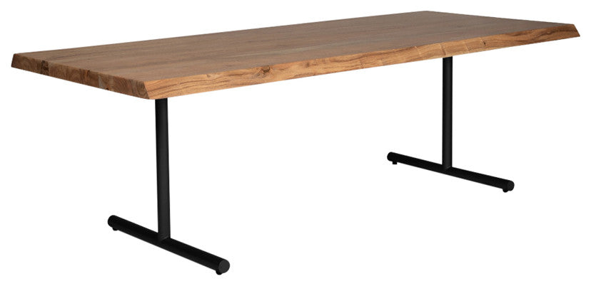 Brooks Dining Table, T Base, 40"x92", Teak Top, Black Base
