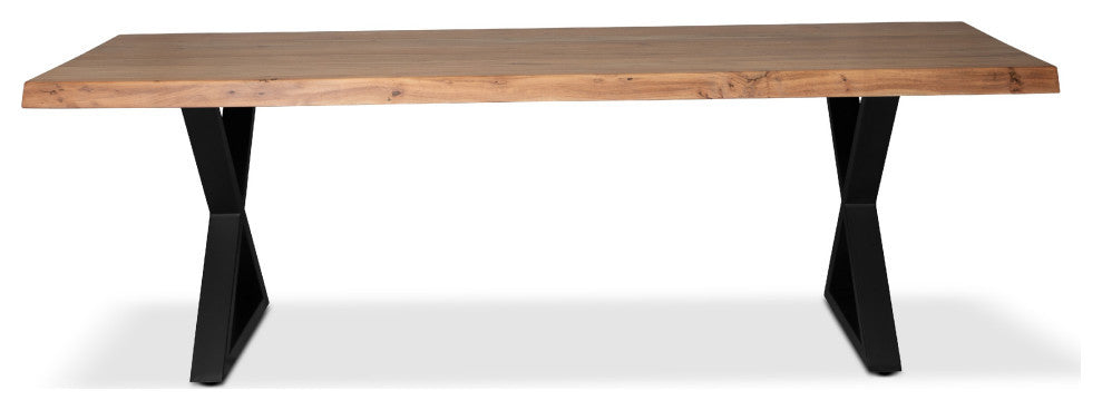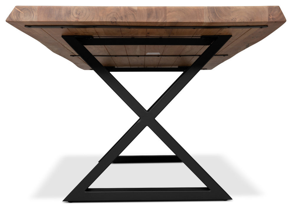 Brooks Dining Table, X Base, 40"x92", Teak Top, Black Base