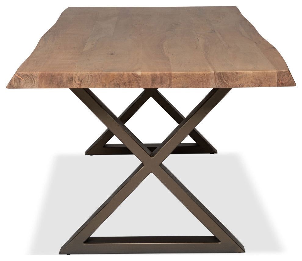 Brooks Dining Table, X Base, 40"x92", Teak Top, Brass Base